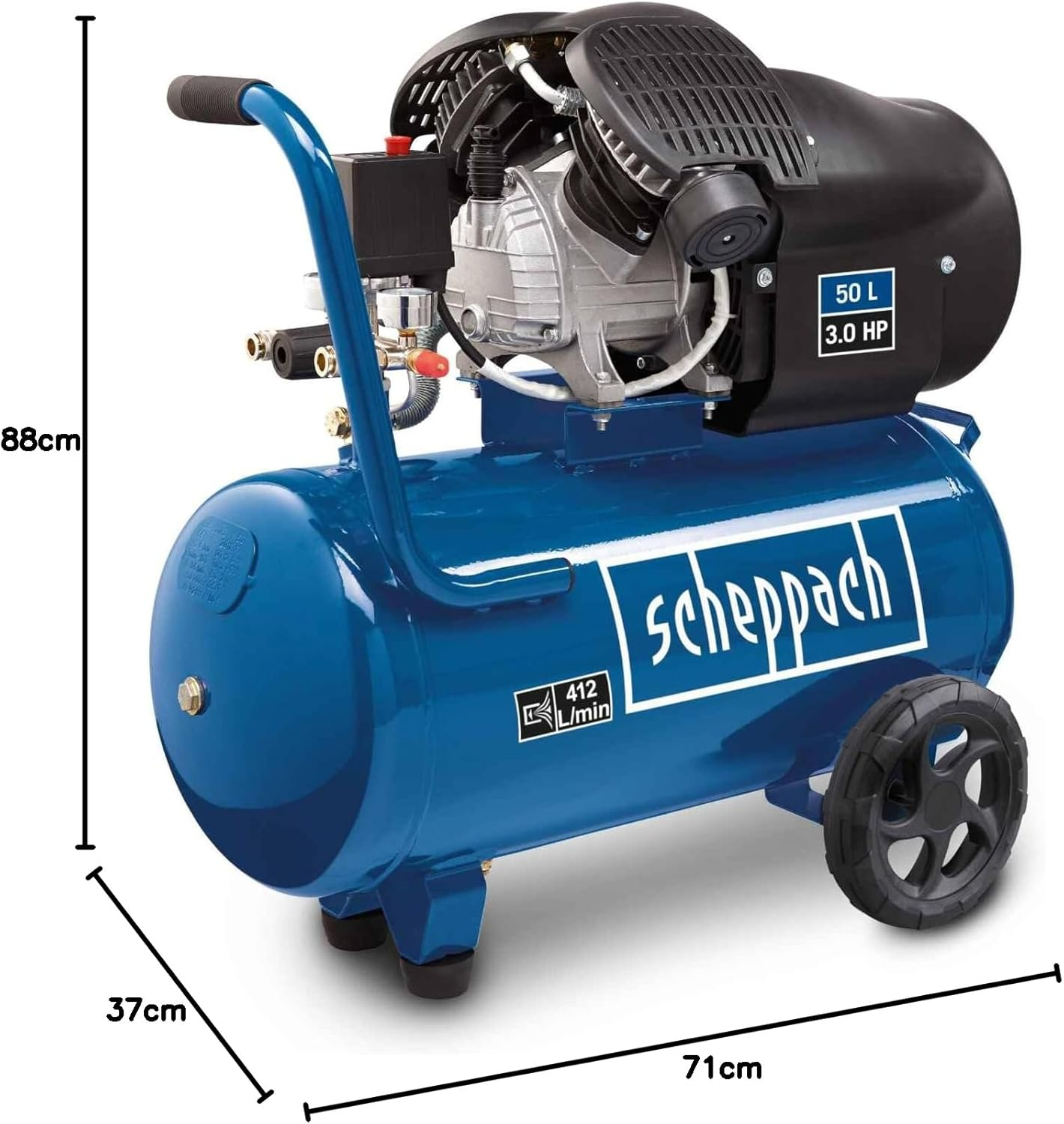 Scheppach HC53DC – Compresseur d’Air 50L, 3 CV, 10 Bar, Double Cylindre